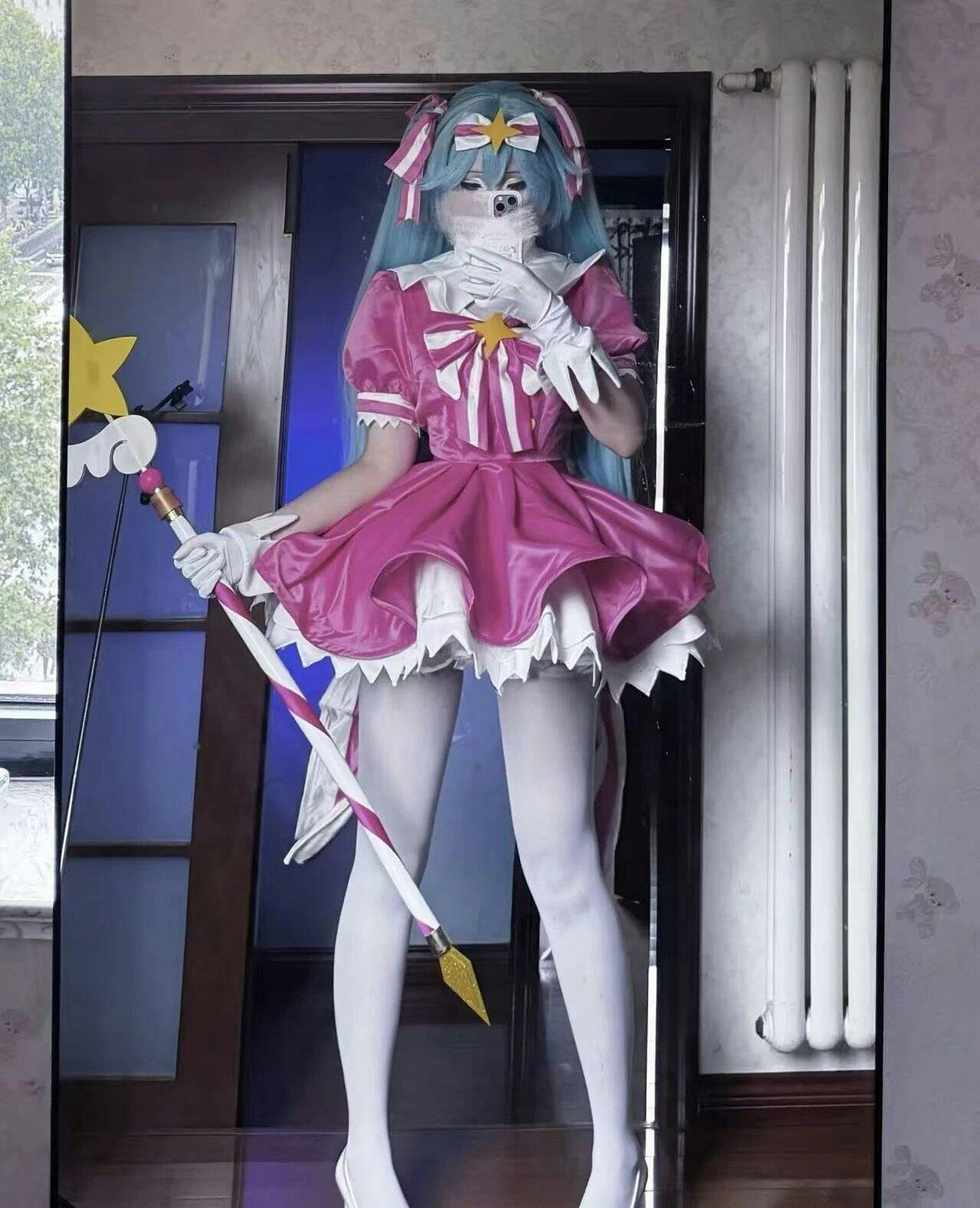 L-email Wig Retry Now Pink Dress Magical Cosplay Costume Wig Full Set