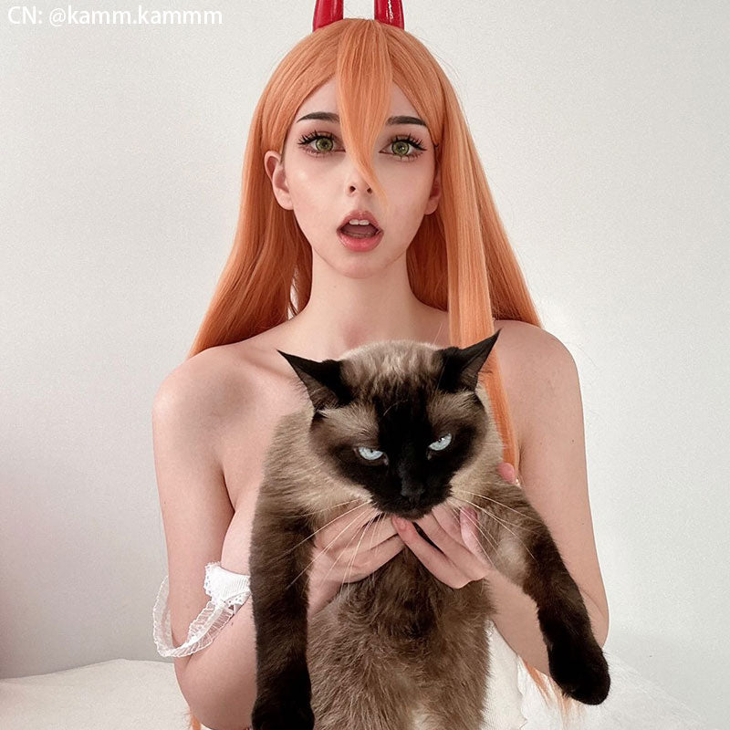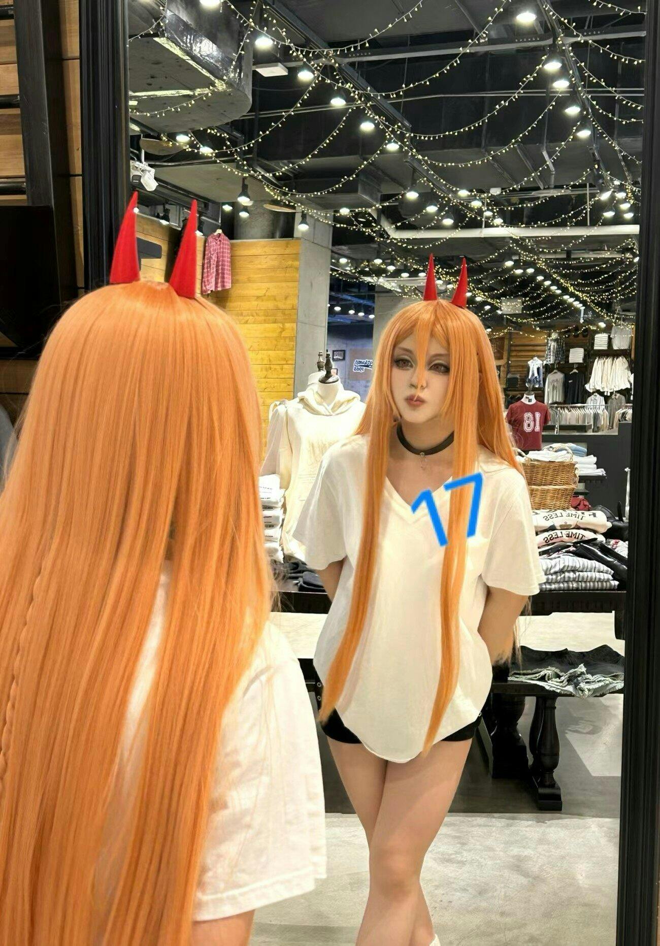 Chainsaw Man Power Long Straight Orange Halloween Cosplay Wigs