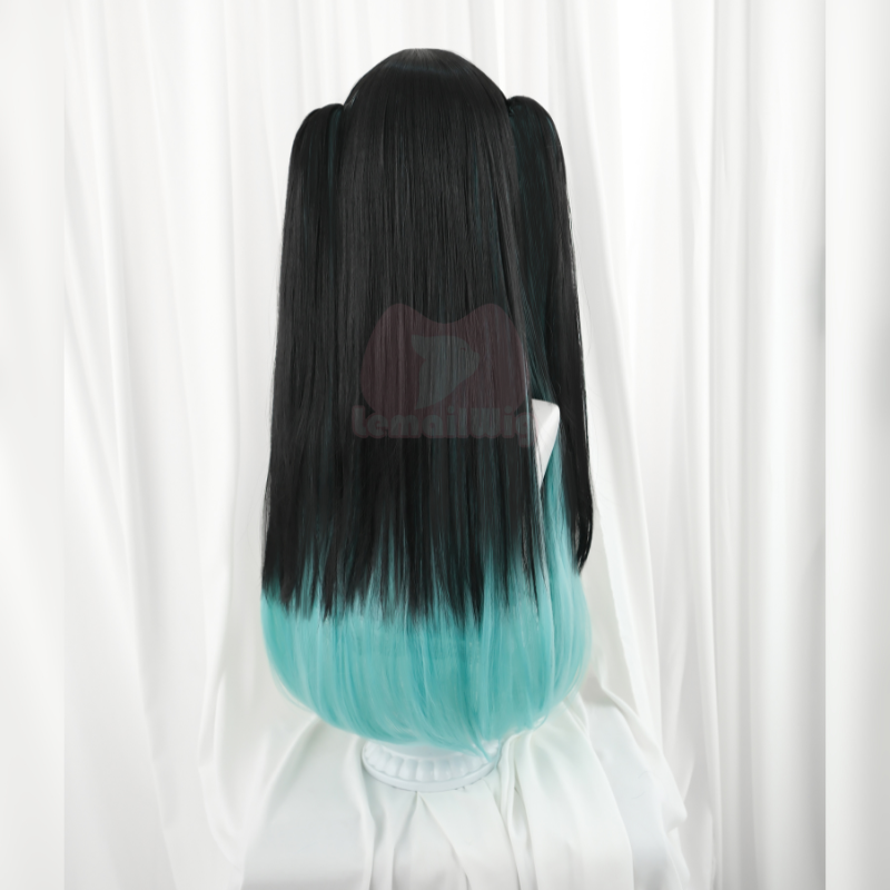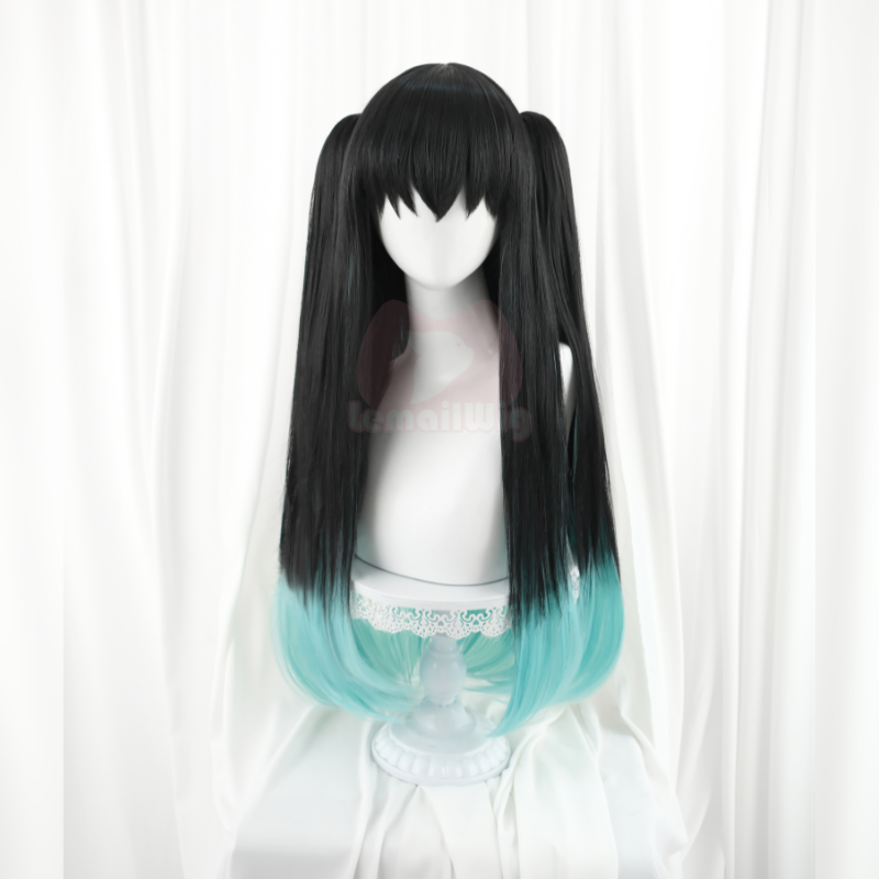 Demon Slayer / Kimetsu no Yaiba Tokitou Muichirou Long Straight Black Gradient Color Cosplay Wigs