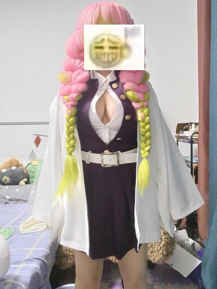 L-email Wig Demon Slayer Kimetsu no Yaiba Kanroji Mitsuri Uniform Halloween Cosplay Costume And Wig Full Set