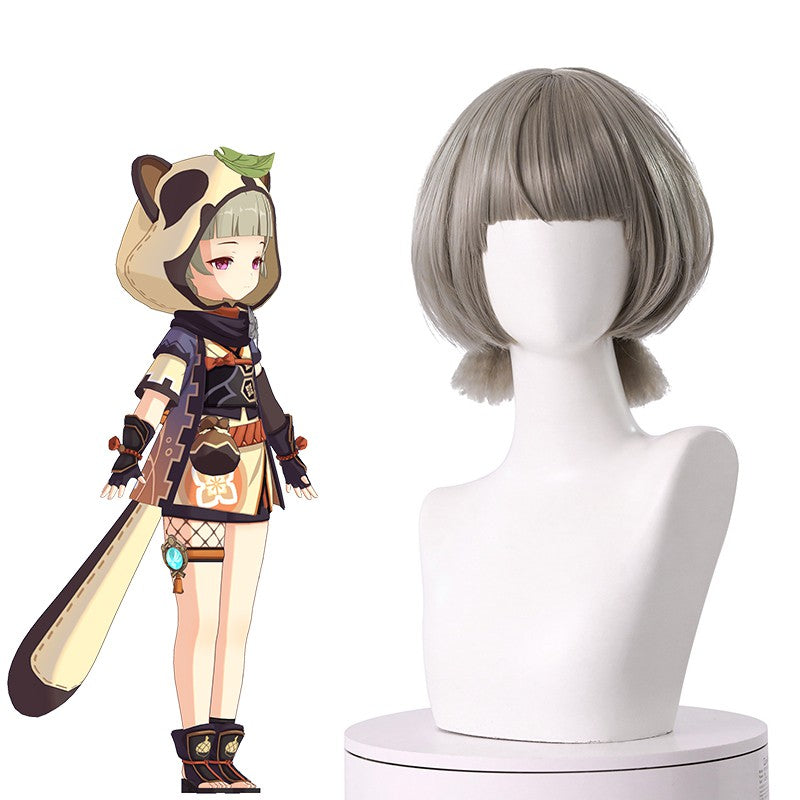 Game Genshin Impact Sayu 35cm Short Grey Bob Cosplay Wigs