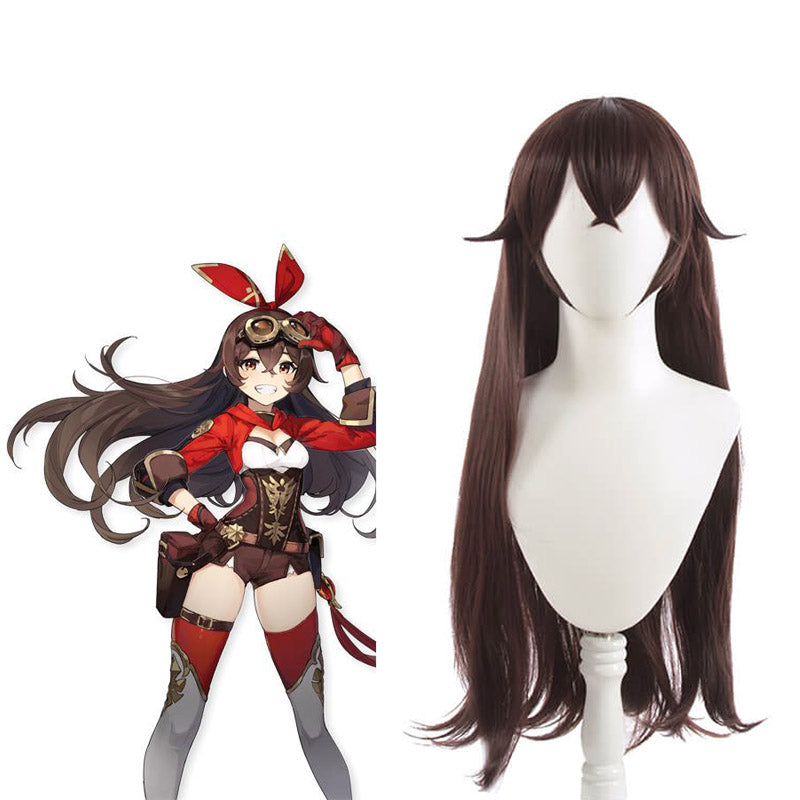 Genshin Impact Amber Long Straight Brown Cosplay Wigs