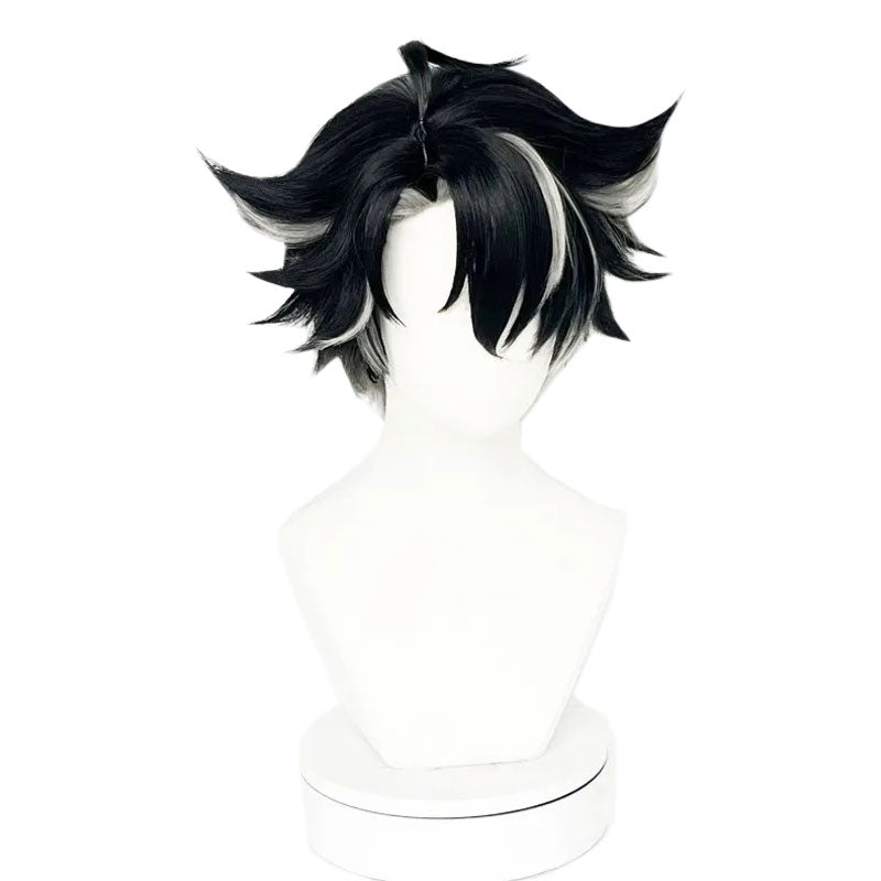 Genshin Impact Fontaine Wriothesley Black Mixed Grey Cosplay Wig