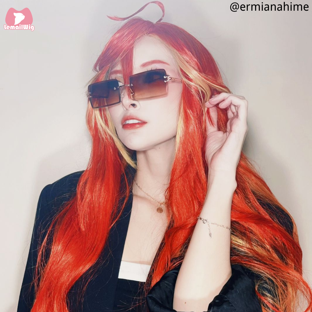 【In stock】Genshin Impact Mavuika Pyro Archon Red Mixed Yellow Long Cosplay Wig