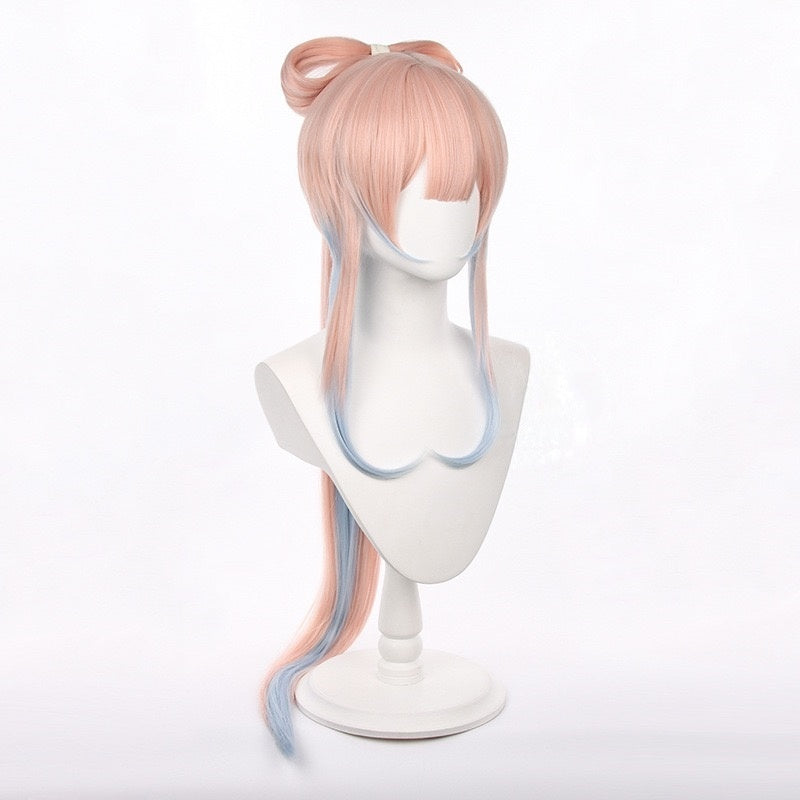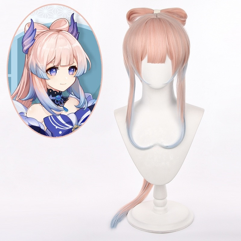 Genshin Impact Sannomiya Kokomi Pink Gradient Blue Long Straight Bow Women Cosplay Wigs