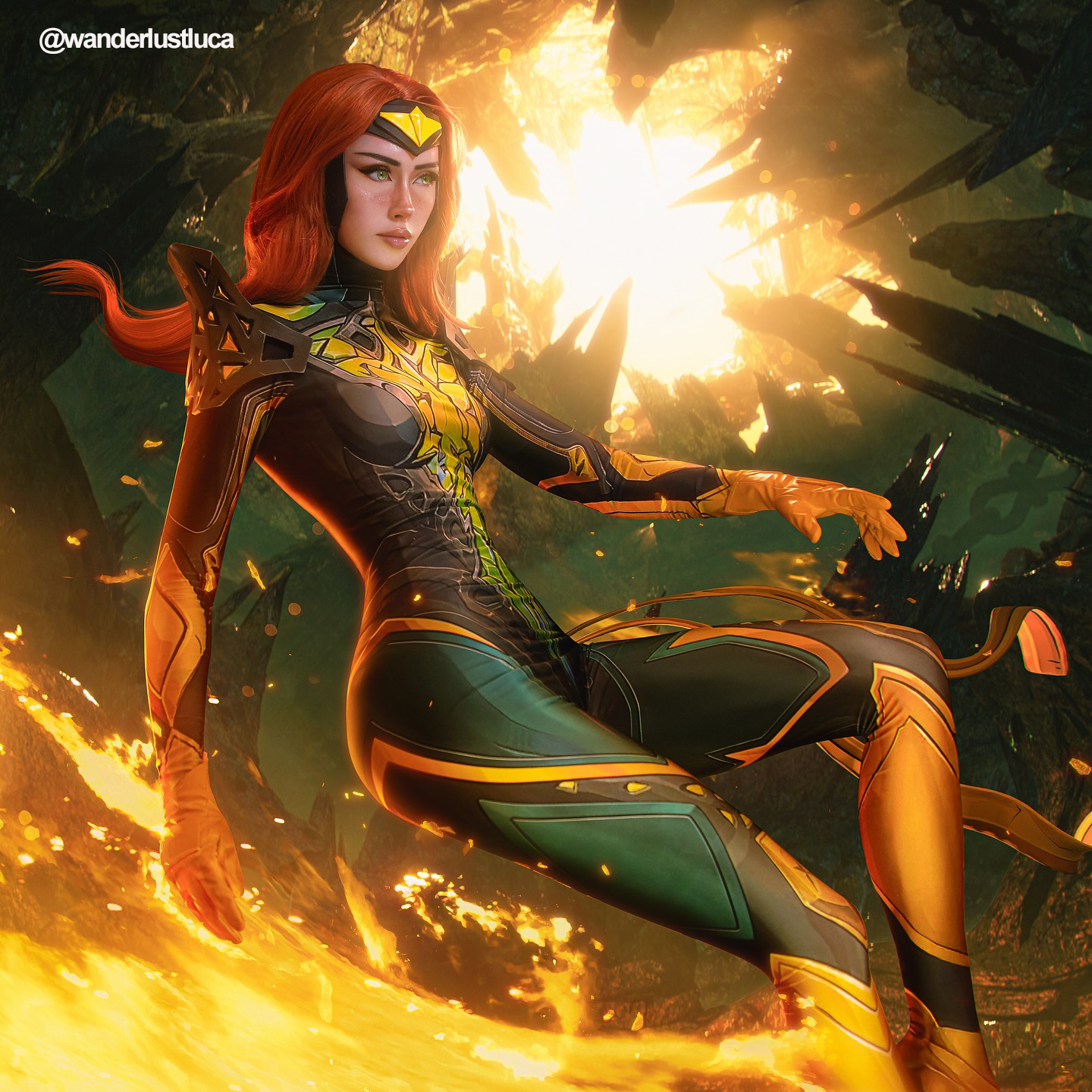 Lemailwig Orange Long Curly Front Lace Wig