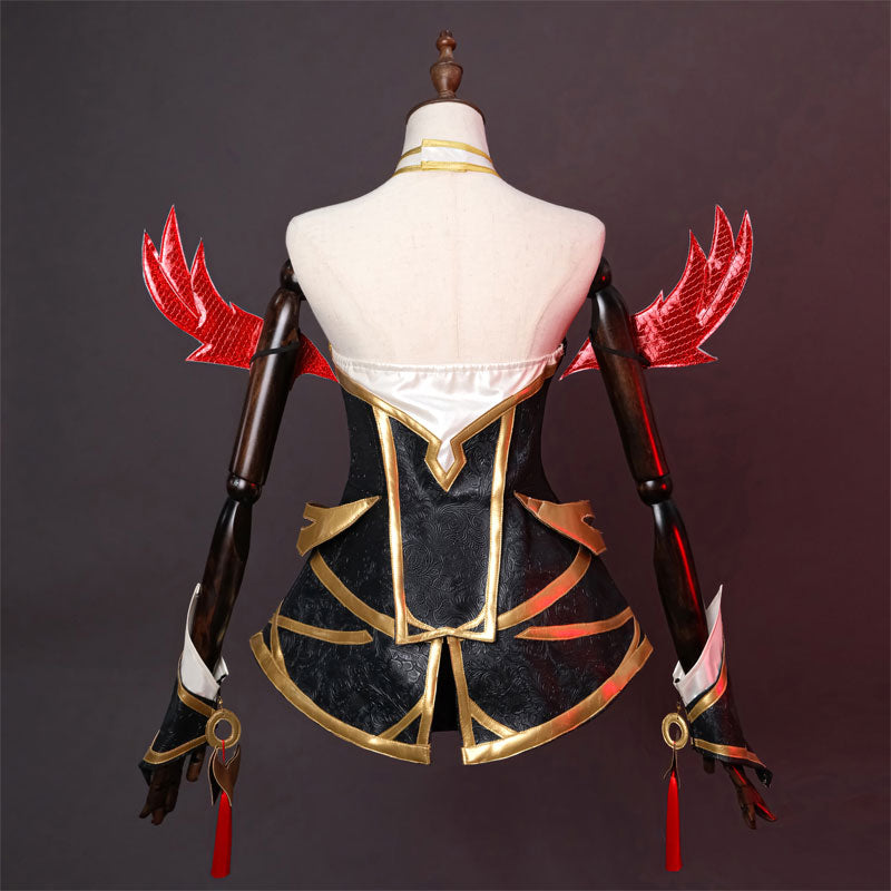 Included Items:Tube top dress*1, leather shorts*1, wristbands*2, armbands*2, leg covers*2, headband*1, hair accessories*1, chest prop*1