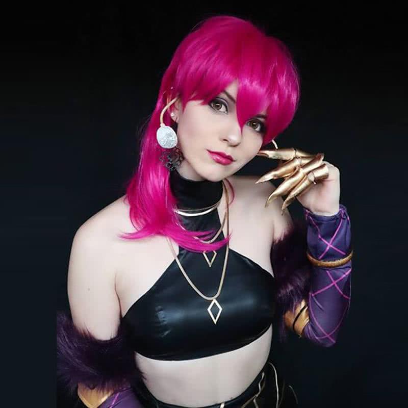 Features: This cosplay wig is based on the character Evelynn from LOL. This fashion wig can be used in cosplay convention and halloween party.