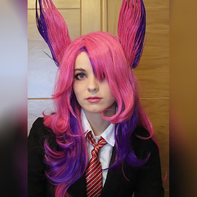 Features: This cosplay wig is based on the character Xayah from LOL Star Guardians. This fashion wig can be used in cosplay convention and halloween party.