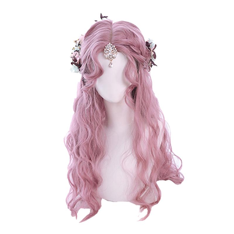 3 Colors Pink Brown Flax Golden Wig Long Loose Curly Lolita Wigs