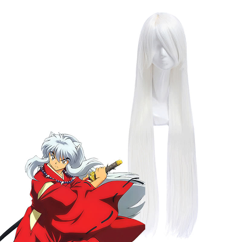 【Last Batch】L-email Wig 100cm Long White Anime Inuyasha Straight Cosplay Wig
