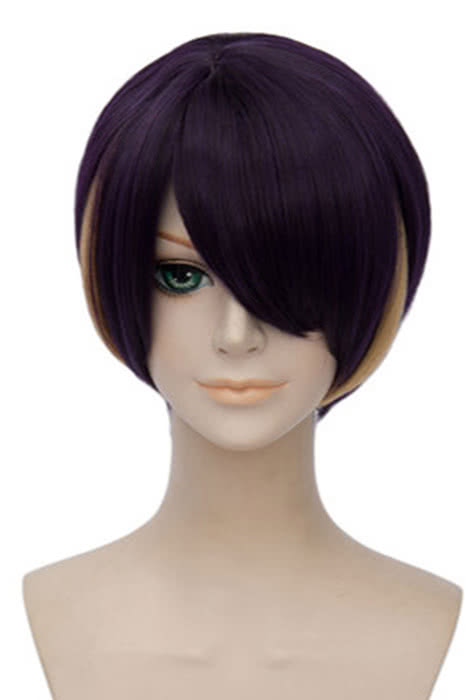 Ensemble Stars Shinobu Sengoku Dark Purple With Yellow Highlight Color Anime Short Straight Cosplay Wigs JF241