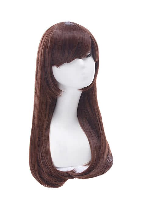 OW D.va Medium Long Straight Hair With Bangs Brown Synthetic Women Cosplay Wigs
