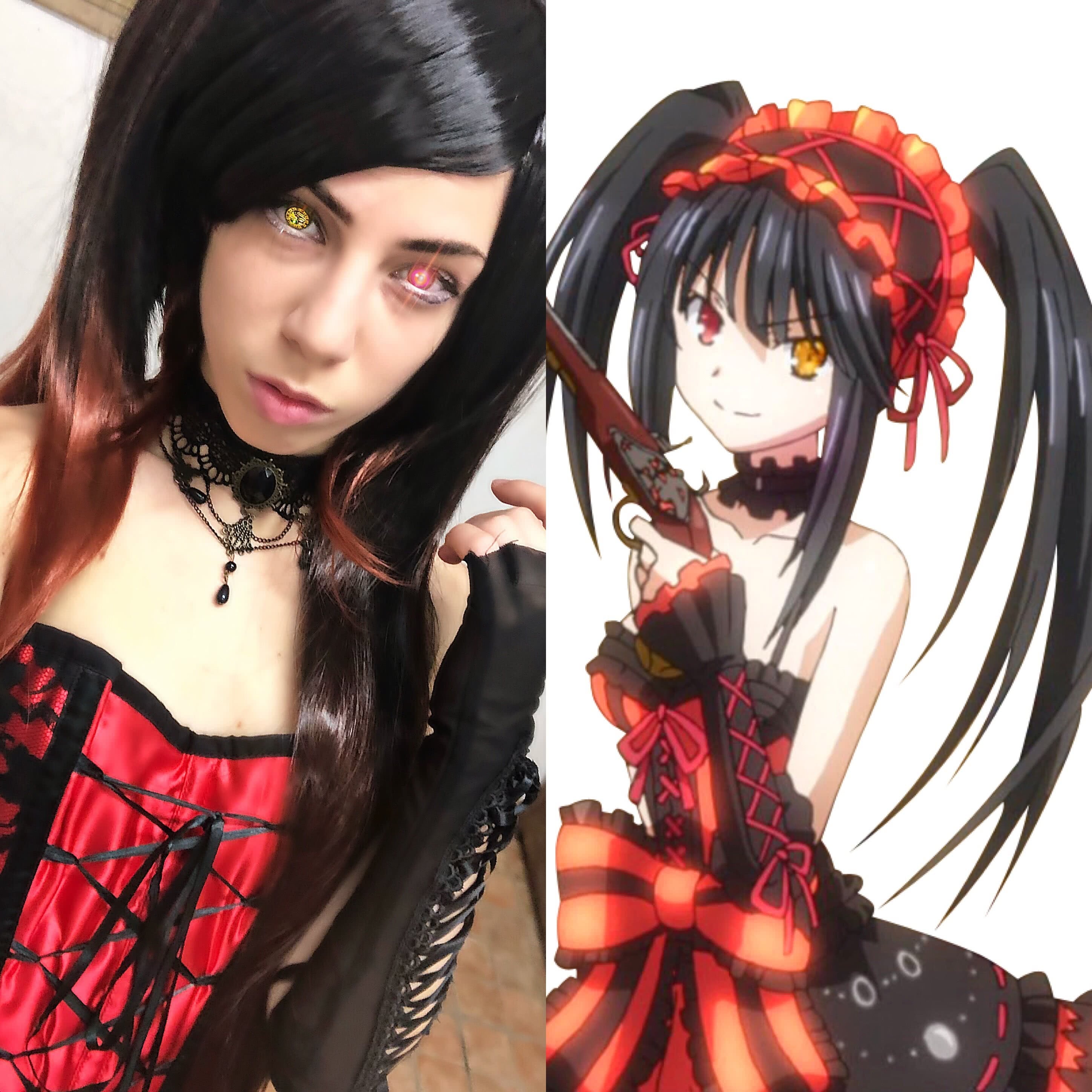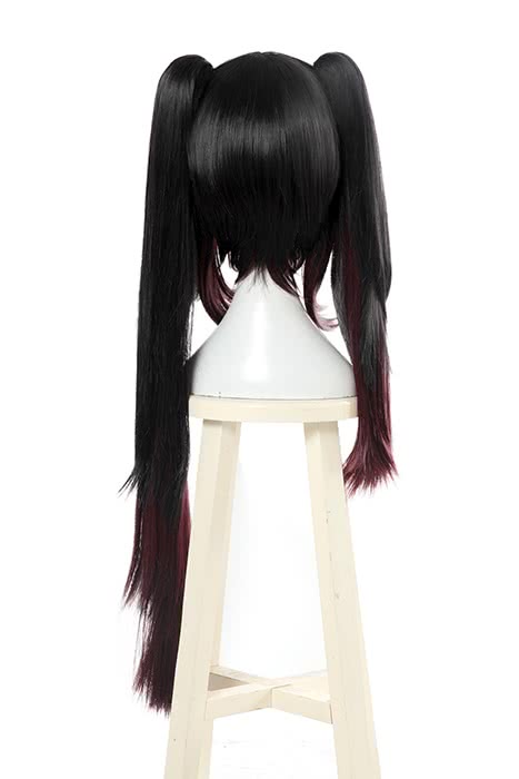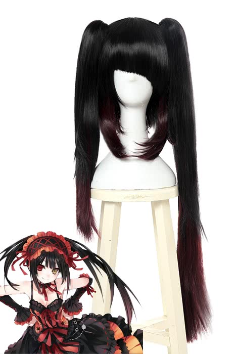 Date A Live Tokisaki Kurumi Lange gerade Pferdeschwänze Schwarz gemischt dunkelrot Cosplay Perücken
