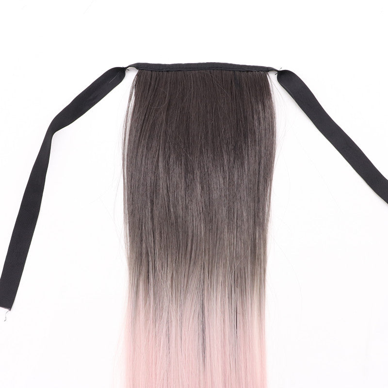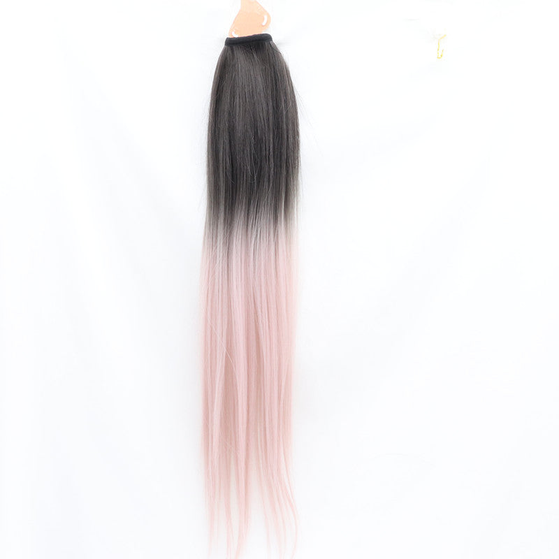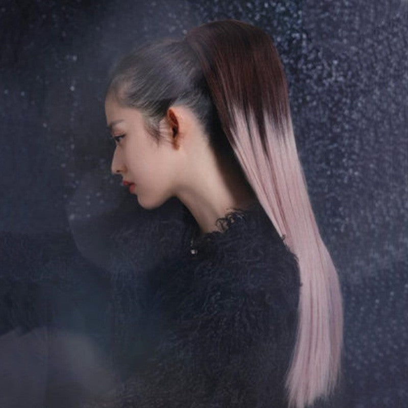 Modische lange glatte Haare, Farbverlauf, rosa Pferdeschwanz, Cosplay-Perücke