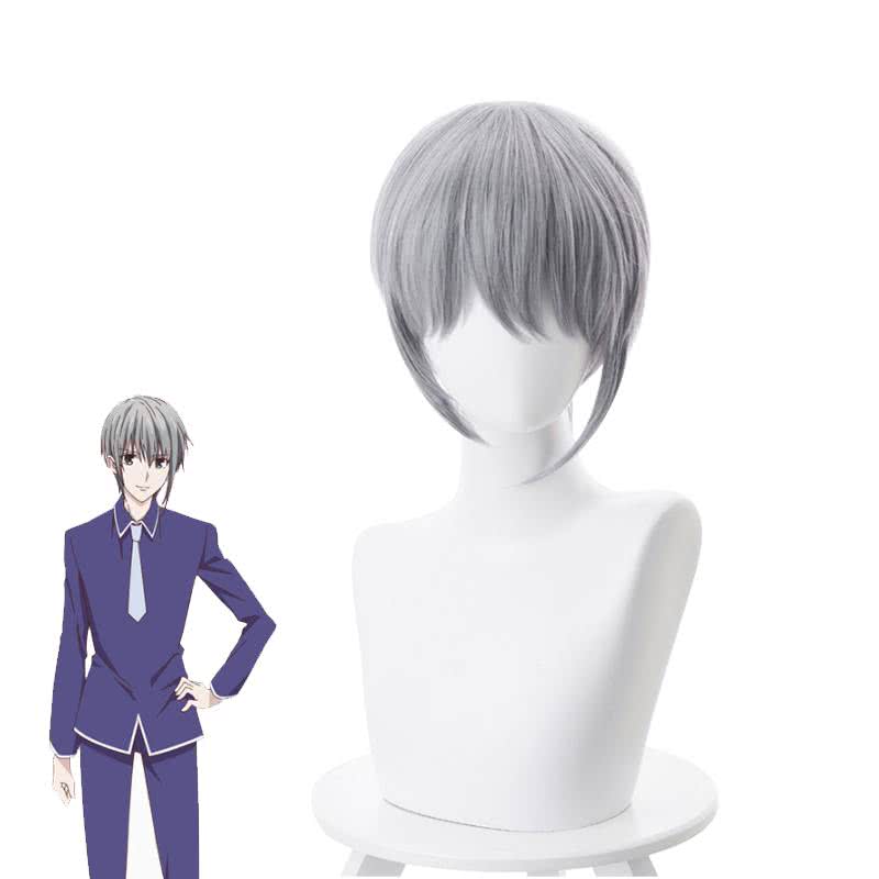 Fruits Basket Soma Yuki Kurze glatte graue Herren-Cosplay-Perücken