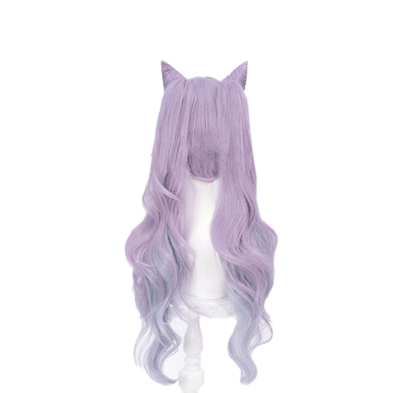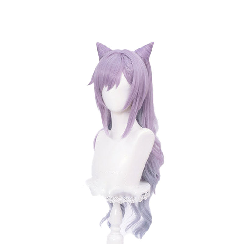 Spiel Genshin Impact Keqing lange gemischte lila Pferdeschwanz-Cosplay-Perücken mit Ohren