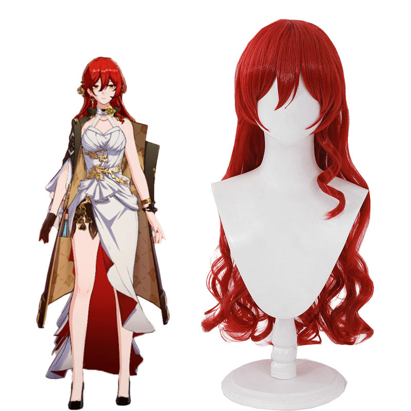 Honkai: Star Rail Himeko Rote lockige Cosplay-Perücke