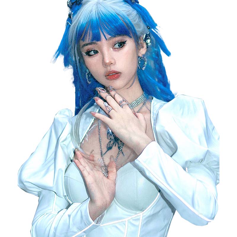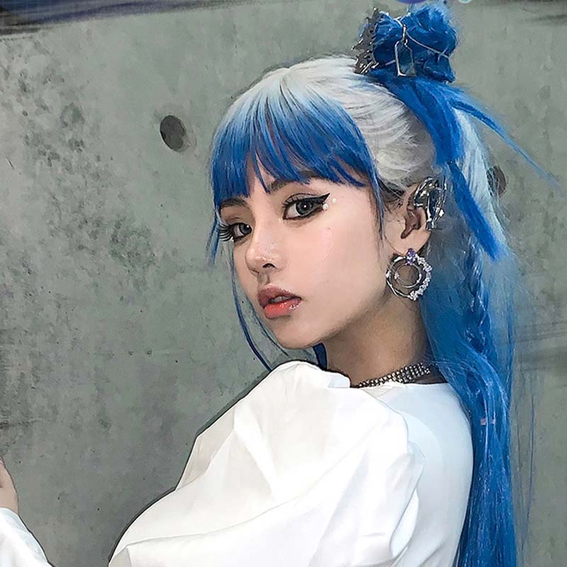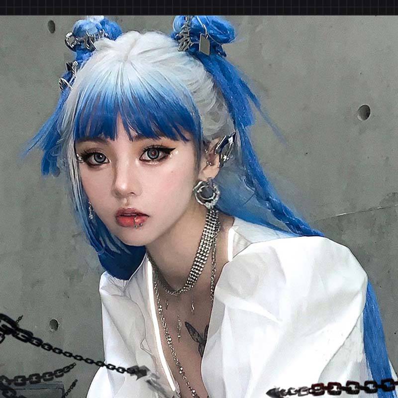 Lolita Haare Farbverlauf Weiß Blau Coole Mädchen Mode Frauen Cosplay Perücken