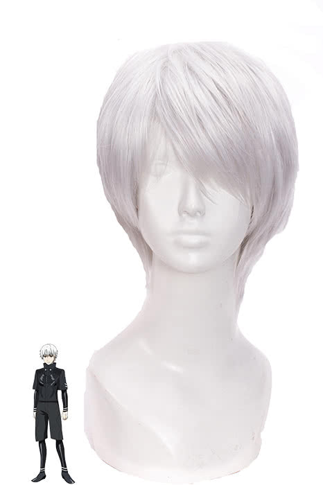 Tokyo Ghoul Kaneki Ken Kurze glatte weiße synthetische Cosplay-Perücken