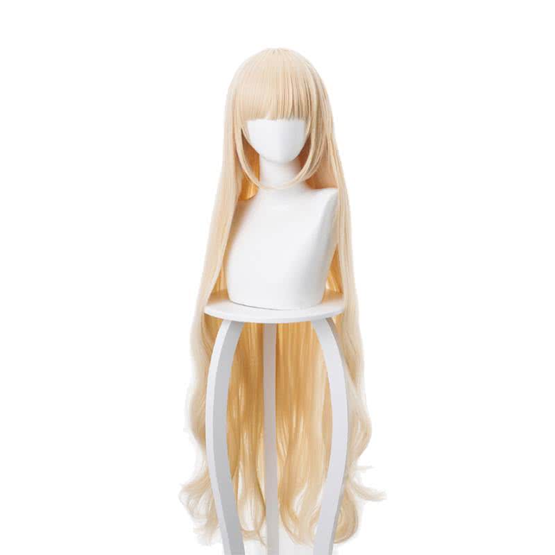 Pelucas de cosplay de Arknights Nightingale, rizadas, rubias y de 110 cm de largo con flequillo plano