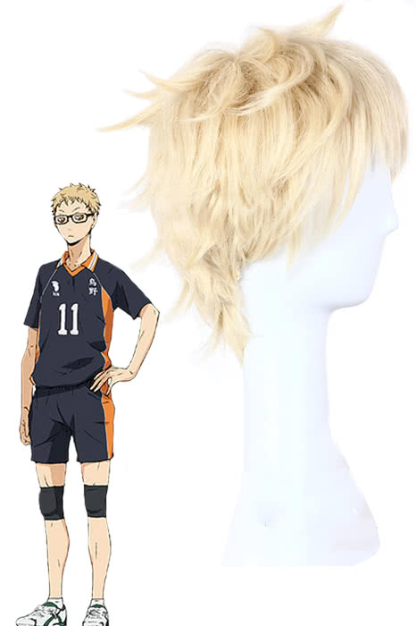 Haiky!!Peluca de cosplay corta rubia de Kei Tsukishima