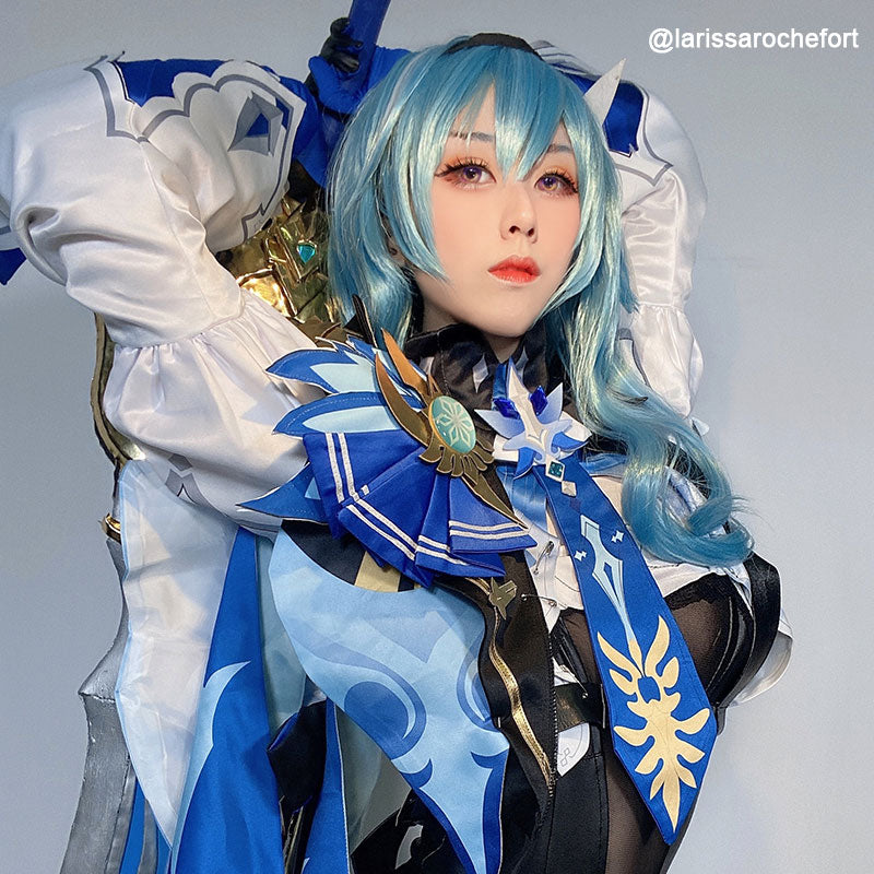 Peluca de cosplay Eula de Genshin Impact azul de 50 cm