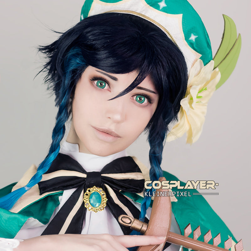 Pelucas de cosplay trenzadas azules con degradado Venti del juego Genshin Impact