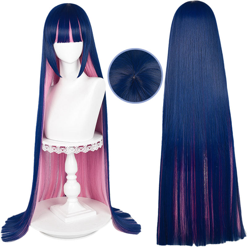 Braguitas y medias con liguero, peluca de cosplay azul larga