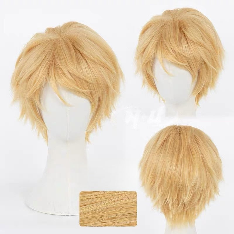 Pelucas clásicas de anime para cosplay, cortas y rubias