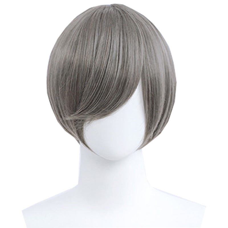 Pelucas de cosplay de anime de color gris oscuro, cortas y rectas, de 30 cm