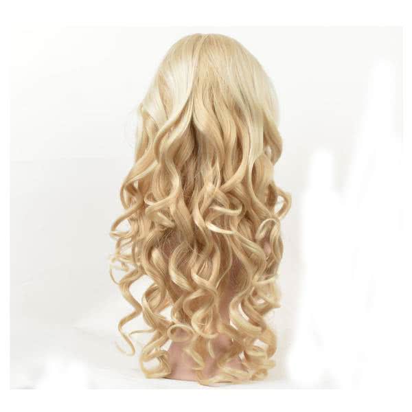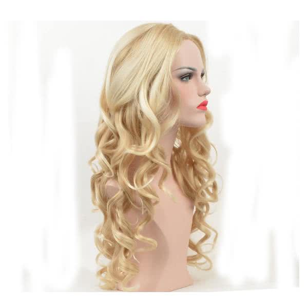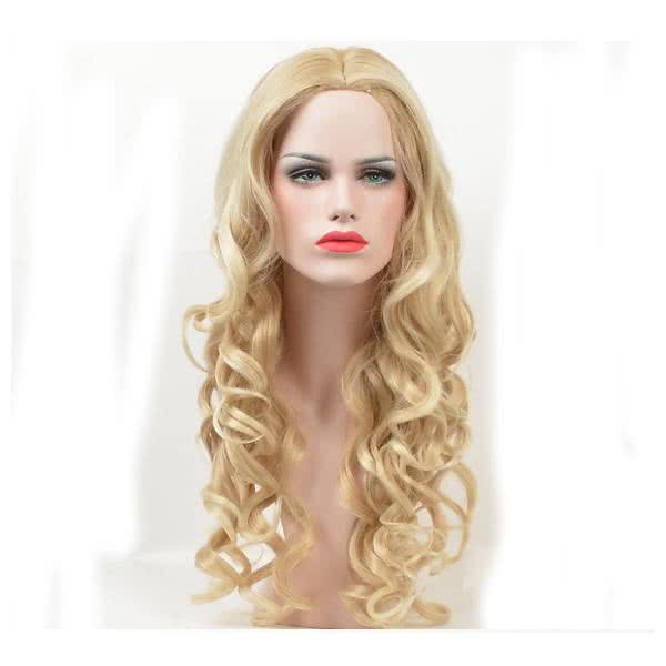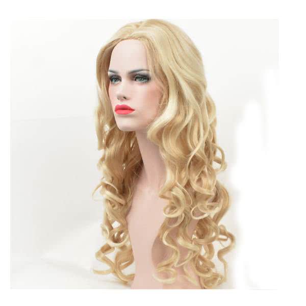 Pelucas de cosplay de moda dulce y rizada de cabello rubio de 60 cm de largo para mujeres