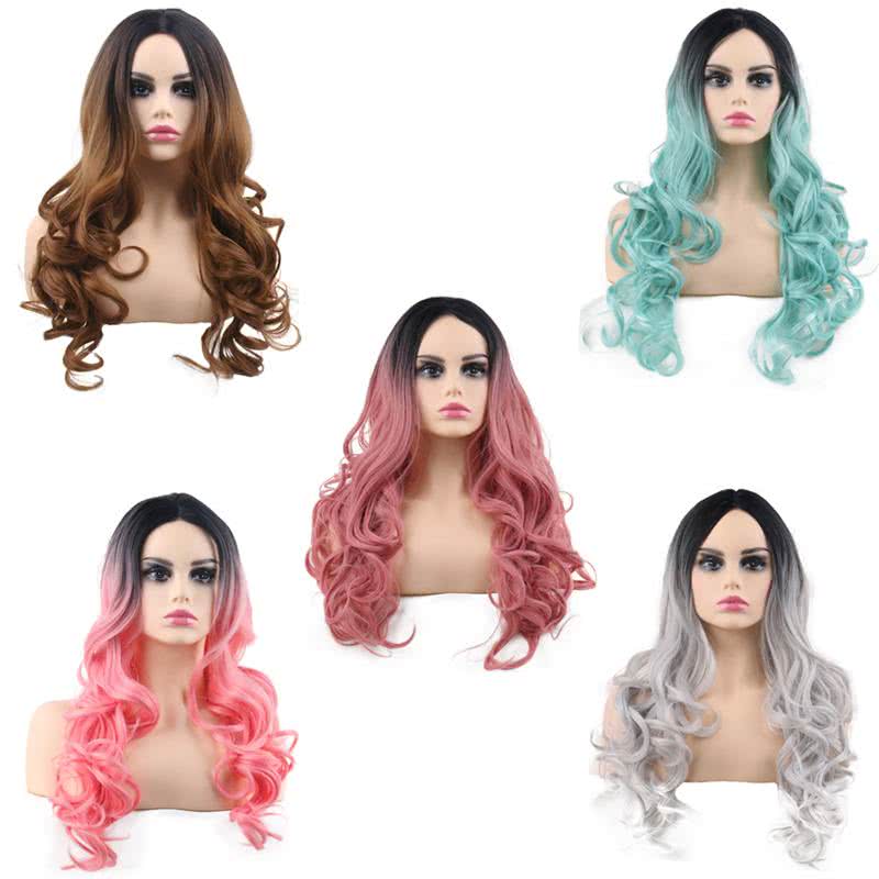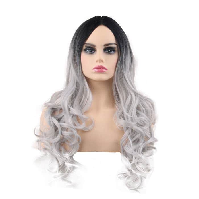 Pelucas clásicas de 60 cm de largo, rizadas, negras, degradadas, marrones, rosas y grises, con encantos de moda