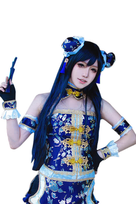 Pelucas de cosplay de color azul oscuro y gris de Sonoda Umi de Love Live! de 80 cm de largo