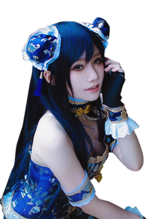 Pelucas de disfraz de Sonoda Umi de Love Live! Pelucas sintéticas de pelo largo y liso de color azul oscuro para cosplay
