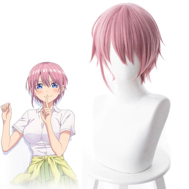 Anime Gotoubun no Hanayome Nakano Ichika Pelucas cortas de color rosa para cosplay
