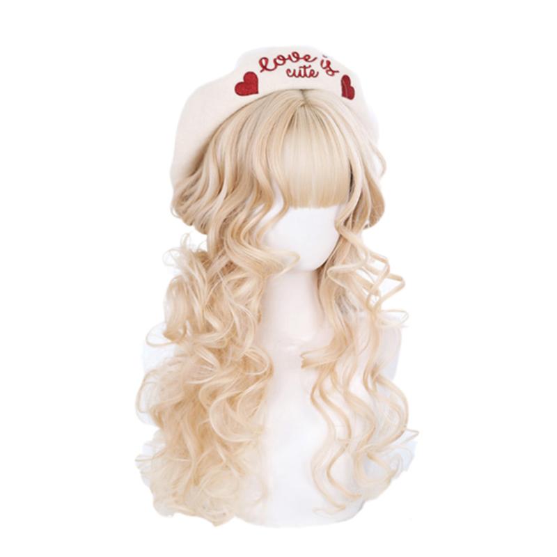 Pelucas de cosplay rubias Pelucas de lolita largas y rizadas con flequillo