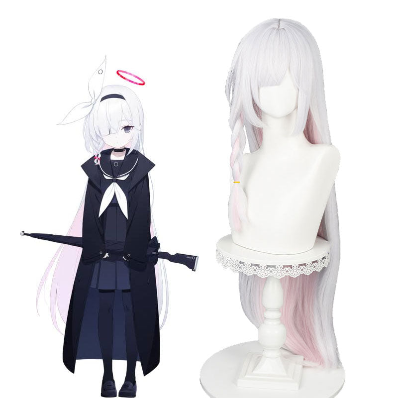 Peluca de cosplay de Plana Arona, color blanco y rosa mezclado con archivo azul