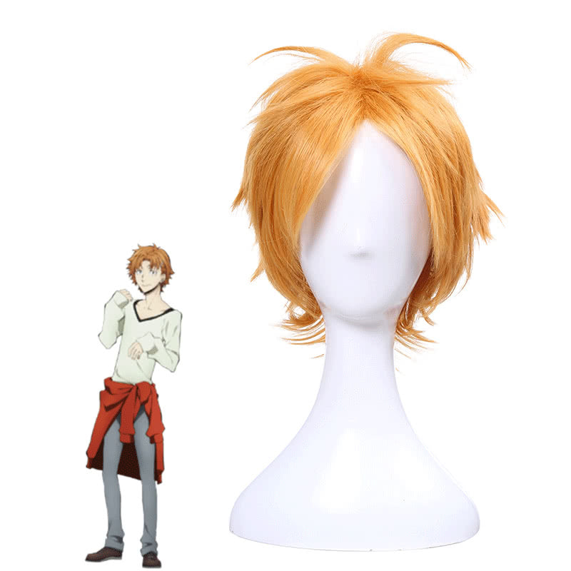 Pelucas de cosplay de Bungou Stray Dogs Junichiro Tanizaki Anime de color naranja y marrón en capas cortas