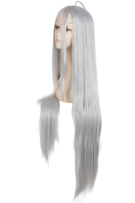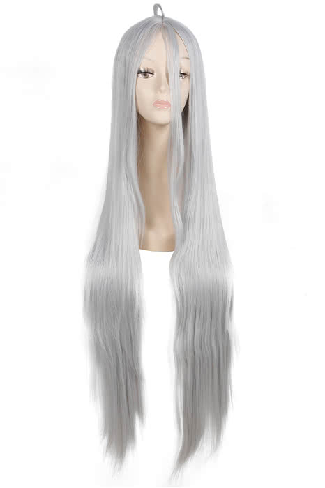 Peluca de anime Deadman Wonderland Shiro, pelo sintético largo y liso, color gris, para cosplay, JF-0117-WTM