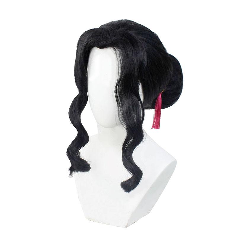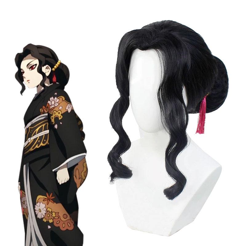 Peluca de cosplay rizada negra para mujer Demon Slayer Muzan Kibutsuji