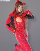 - The asuka evangelion Cosplay Costume is a great choice for fans of the Neon Genesis Evangelion anime series. The costume is made of stretch leather which makes it comfortable to wear and easy to move around in. The suit comes with a bodysuit, carapace, socks, and gloves. The bodysuit is designed to fit snugly and has a zipper closure in the back for easy on and off. The carapace is made of a hard plastic material and is attached to the bodysuit with straps. The socks and gloves are also made of stretch leather and complete the look of the costume.
