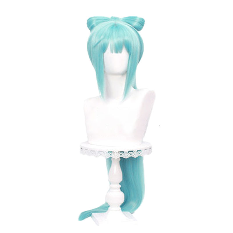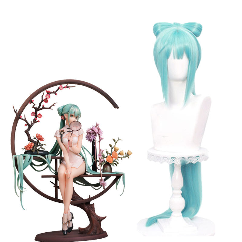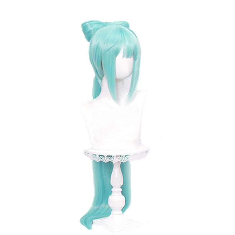 Pelucas de cosplay de color azul con cola de caballo y lazo largo de Hatsune Miku