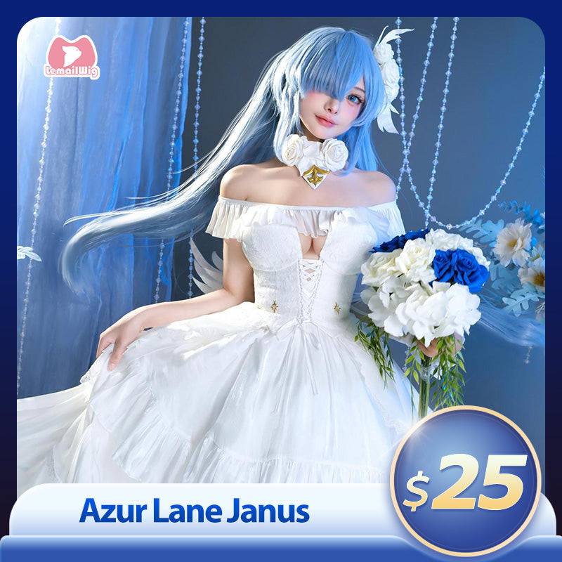 【48HR SHIP】L-email Wig Azur Lane Janus White Cosplay Dress