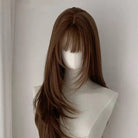 Lemailwig Brown Long Straight Bangs Lace Front 65cm Wig