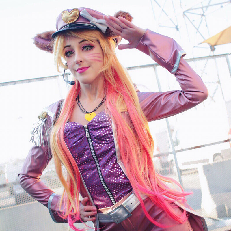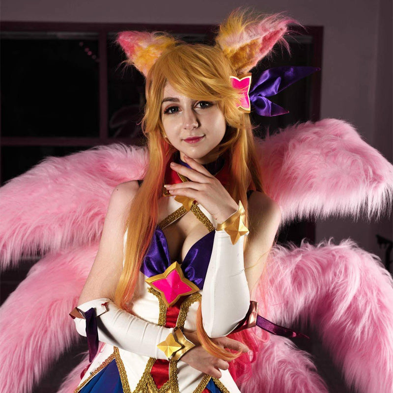 Características : Esta peluca de cosplay está basada en el personaje de Star Guardians Ahri en el popular juego LOL, mismo color, mismo estilo. ¿Estás lista para tu cosplay de Star Guardians Ahri? ¡El disfraz y la peluca de Star Guardian Ahri de L-email harán que tu actuación de cosplay sea más maravillosa! Se puede usar en convenciones de cosplay y fiestas de Halloween.