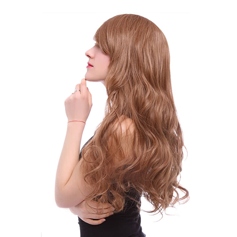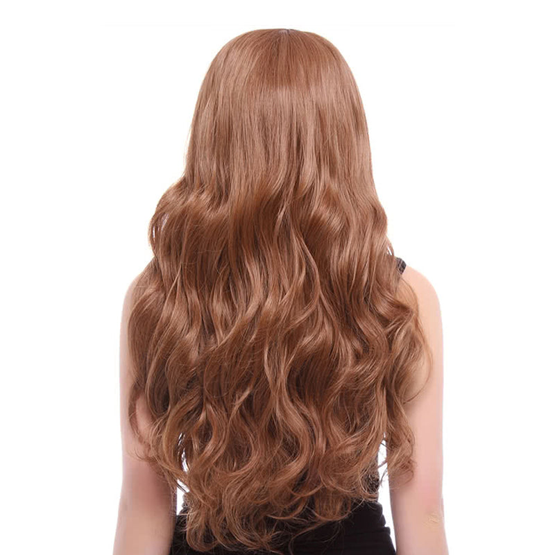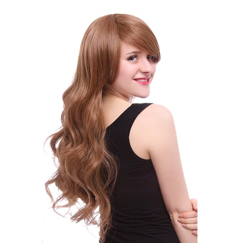 Peluca de cosplay de pelo Kanekalon largo y ondulado de color castaño claro