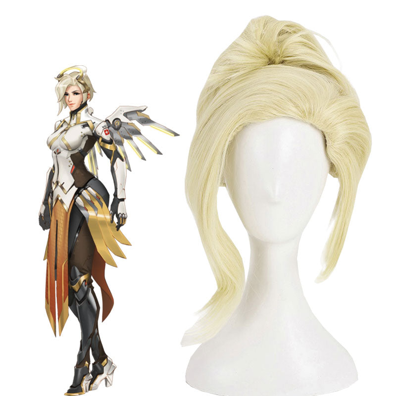 Características : La peluca de cosplay OW Mercy se puede usar en convenciones de cosplay y fiestas de Halloween.