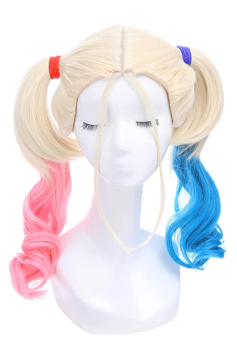 Pelucas de cosplay con ondas teñidas de Harley Quinn del Escuadrón Suicida
