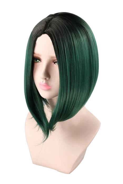 Pelucas de pelo sintético de moda, pelucas cortas y rectas con degradado verde y negro para mujeres